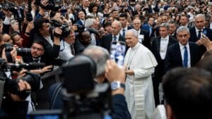 Na sequência, o Santo Padre reiterou a solidariedade da Igreja aos jornalistas presos por relatar a verdade e pediu a libertação dos mesmos. “A Igreja reconhece nestas testemunhas, penso naqueles que relatam a guerra mesmo à custa da própria vida, a coragem de quem defende a dignidade, a justiça e o direito dos povos à informação, porque só os povos informados podem fazer escolhas livres”.