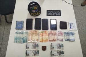 No momento da prisão, os policiais apreenderam várias cédulas com sinais de falsificação, aparelhos celulares e documentos dos suspeitos. O material foi levado para uma agência bancária, onde foi confirmada a fraude.